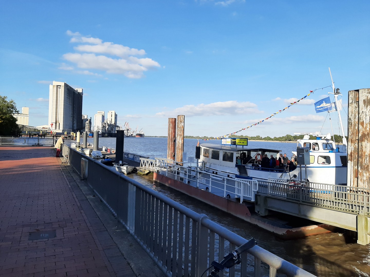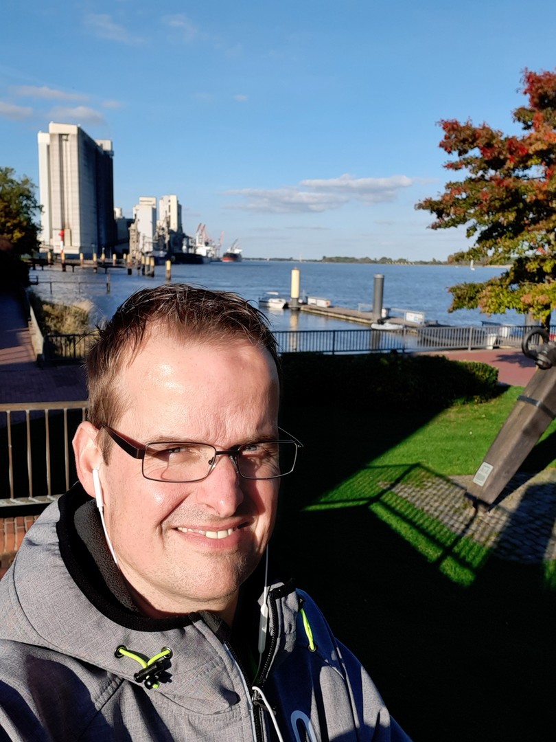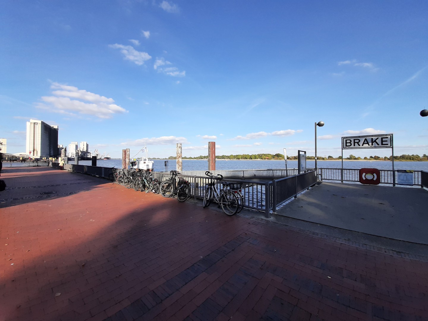 Am ersten Tag sammelte ich 26 Mitglieder vom Chor für geistliche Musik an mehreren Haltepunkten in Oldenburg ein und brachte sie in die Stadtkirche nach Brake zur Generalprobe. Nach dem ich den Chor an der Kirche in der Kirchenstraße abgesetzt hatte, musste ich mir einen Parkplatz suchen. Diesen war schnell auf dem Parkplatz der Tourist-Information gefunden. Das tolle Wetter lud nun zur Erkundung der 16.000 Einwohner lebenden Stadt ein. Brake kannte ich so noch nicht. In direkter Nähe der Touristinformation befand sich das Schifffahrtsmuseum was leider geschlossen war. Dafür entschädigte der tolle Ausblick auf die Weser. Zum Einbruch der Dunkelheit erreichte ich den Binnenhafen. Um 21.30 Uhr holte ich dann den Chor wieder ab und der erste Tag war geschafft. Meinen Bus nahm ich quasi mit nach Hause und legte die letzten 2 Kilometer nach Hause mit dem Rad zurück. Schließlich war am nächsten Tag dort auch der Startpunkt.