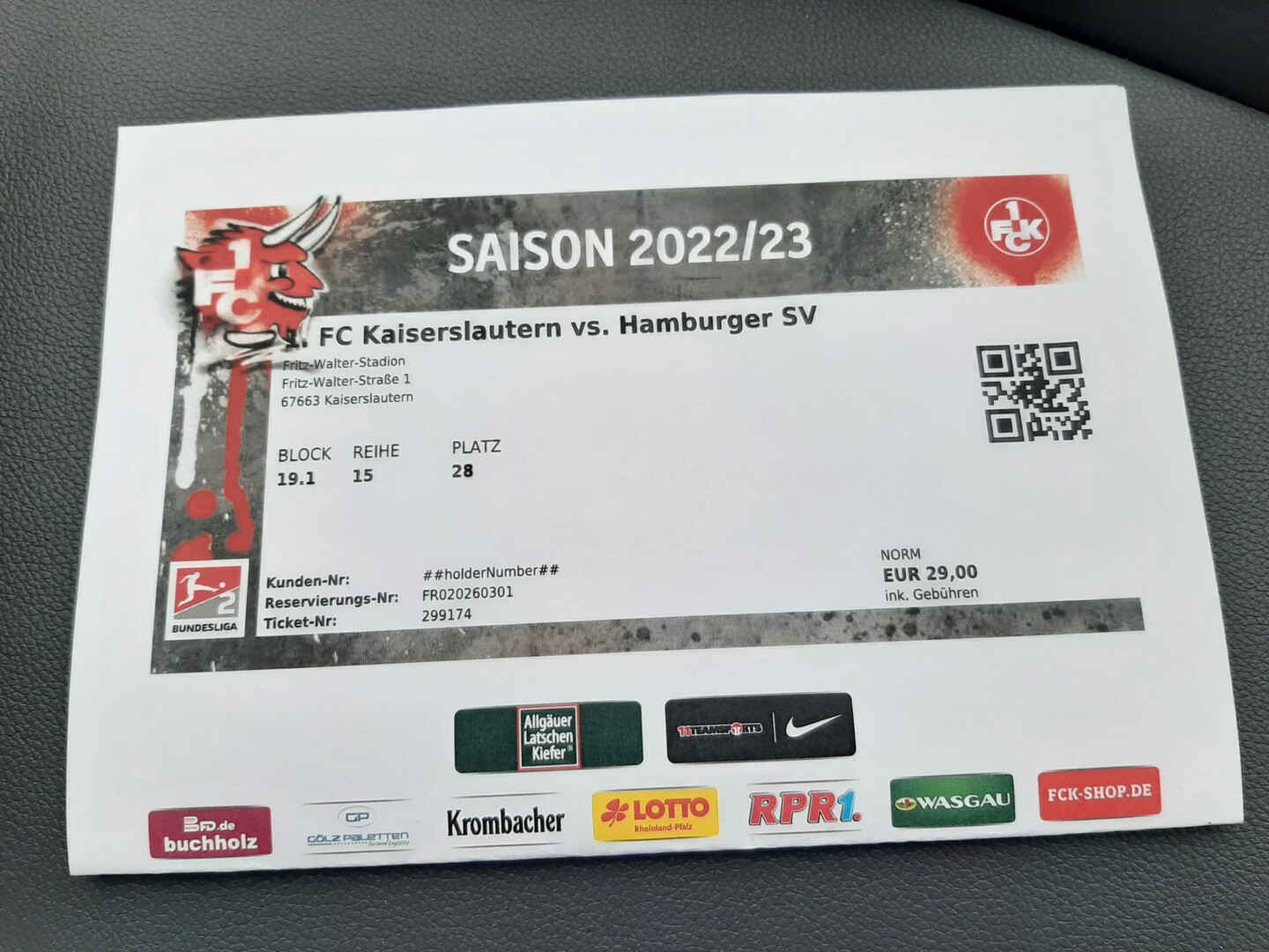 Eindruck auf mich einwirken und ahnte schon, es würde ein besonderer Abend werden. Kurze Zeit später kamen bereits beide Mannschaften zum einlaufen rein und es wurde auf beiden Seiten sehr laut. Noch 10 Minuten bis zum Spiel. Der Betzenberg war mit 49.326 Zuschauern ausverkauft und die Stimmung war absolut Erstligareif. Die Choreografie war einfach nur Gänsehaut pur! Unterstützt wurde diese seitens der HSV-Fans (leider) mit Bengalos und Knaller die in den Himmel geschossen wurden.Anpfiff der Partie 1.FC Kaiserslautern als Aufsteiger gegen den Aufstiegsfavorit Hamburger SV. Die erste Halbzeit war schnell vorbei und ohne große Torraum-Aktionen. Lediglich einmal traf der HSV die Querlatte (44.). In der zweiten Halbzeit erspielte sich der HSV auch wenig Chancen obwohl sie klaren Ballbesitz hatten. Durch zwei schlimme individuelle Abwehrfehler gelang es dem FCK vorentscheidend mit 2:0 in Führung zu gehen. Das Fritz-Walter-Stadion feierte und die ca 6000 HSV-Fans wurden wieder mal von Ihrer Mannschaft enttäuscht.