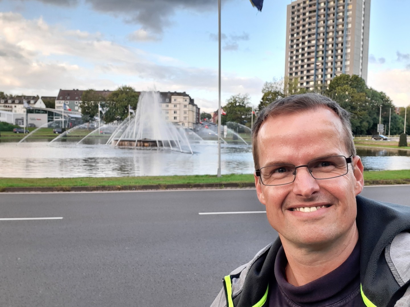 Nach einer unruhigen Nacht klingelte um 5 Uhr mein Wecker. Nun hieß es fertig machen und auschecken. Vom Hotel gab es ein Frühstücksbeutel für mich mit, da es erst ab 7.30 Uhr Frühstück gab. Pünktlich um 6 Uhr stiegen die ersten 16 Gäste am Hauptbahnhof ein. Die Straßen waren noch leer und so kam ich prima nach Köln durch. Wunderschön anzusehen war das Panorma auf Köln mit dem Sonnenaufgang von der Autobahn. Um 8 Uhr stiegen dann noch an der Laxness-Arena die letzten Reisende zu. Nun lagen 415 Kilometer auf der A1 vor mir.