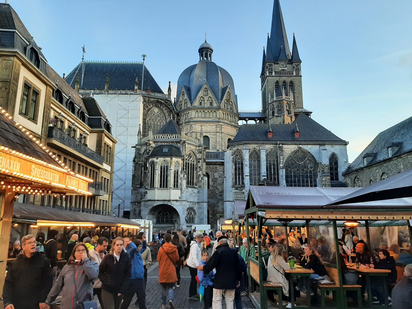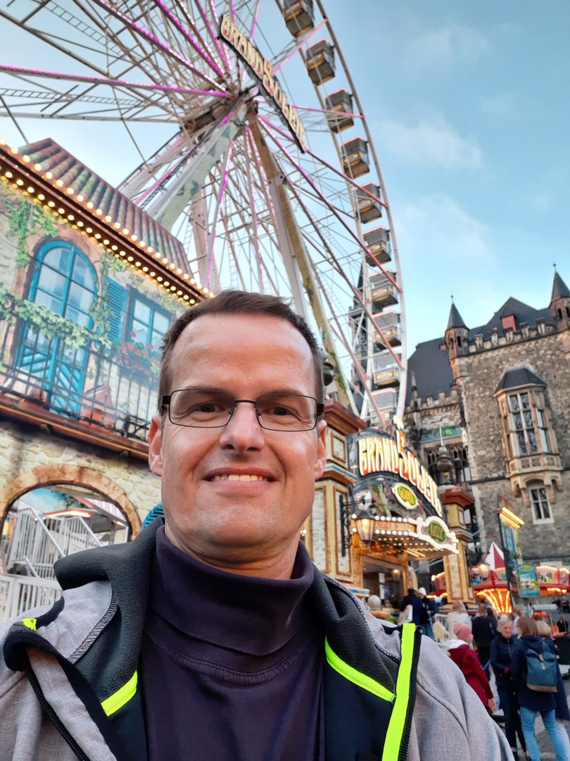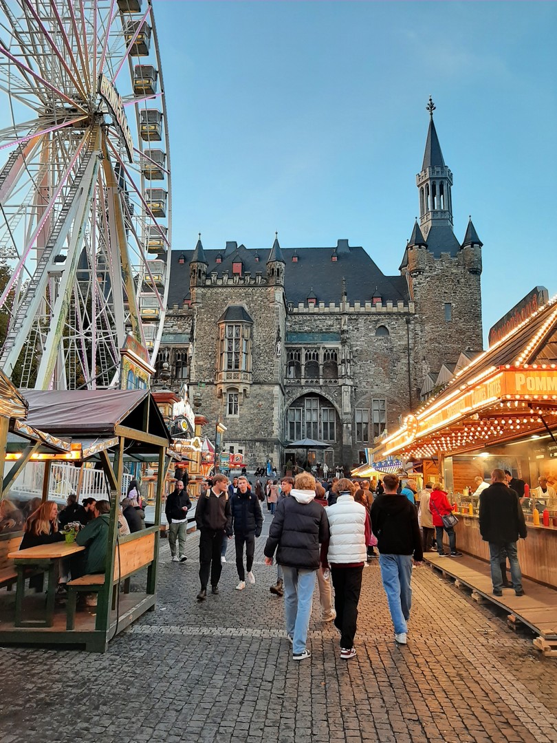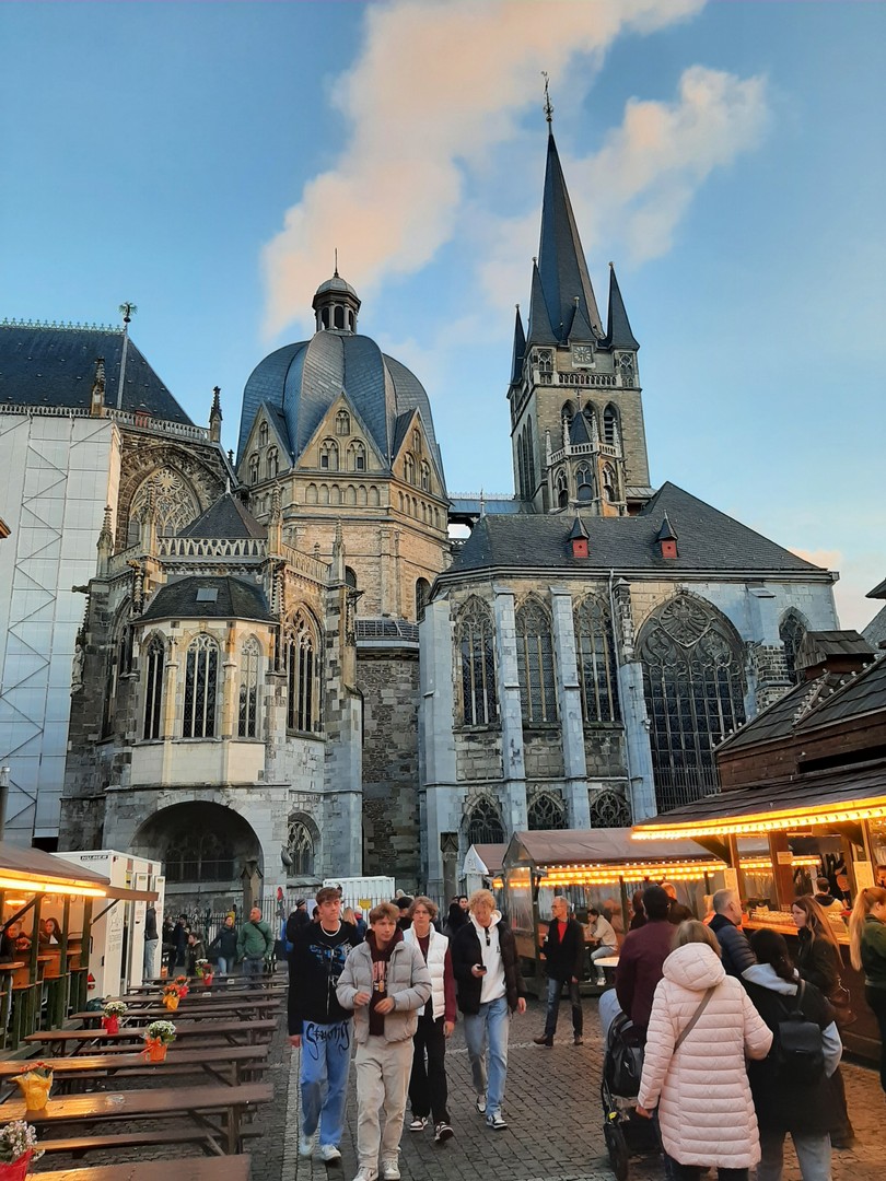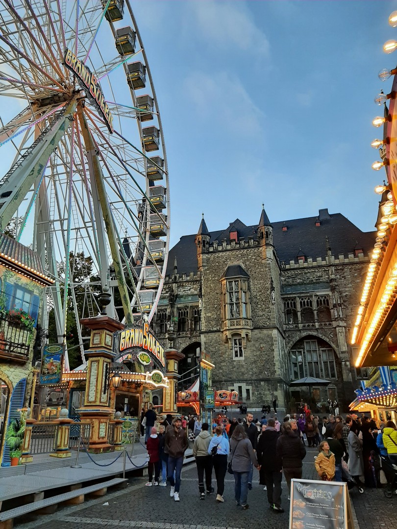 Geplant um 18 Uhr stand ich mit meinem Bus auf dem Parkplatz des Hotel Mercure. Nach dem Check-In bezog ich mein Zimmer Nr. 201, wo ich meine Nacht verbringen sollte. Jetzt hatte ich es eilig, denn ich wollte mir natürlich Aachen ansehen. Begonnen habe ich am berühmten Europaplatz, der direkt neben dem Hotel war. Weiter ging es zur Stadterkundung. Vorbei an der großen Musikschule und am Frittenwerk kam ich am Elisenplatz raus. Ich war direkt in der Stadtmitte und es fand so Art Stadtfest dort. Die Gruppe "Druckluft" spielte Live auf der Bühne, gut gelaunte Mennschen, prima Wetter, den DOM vor Augen und am Münsterplatz ein Rummel. Es wurde ein Richtig toller Abend! Bereits um 21.30 Uhr musste ich dann wieder im Hotel sein, denn am nächsten Morgen musste ich sehr früh raus.