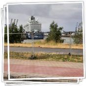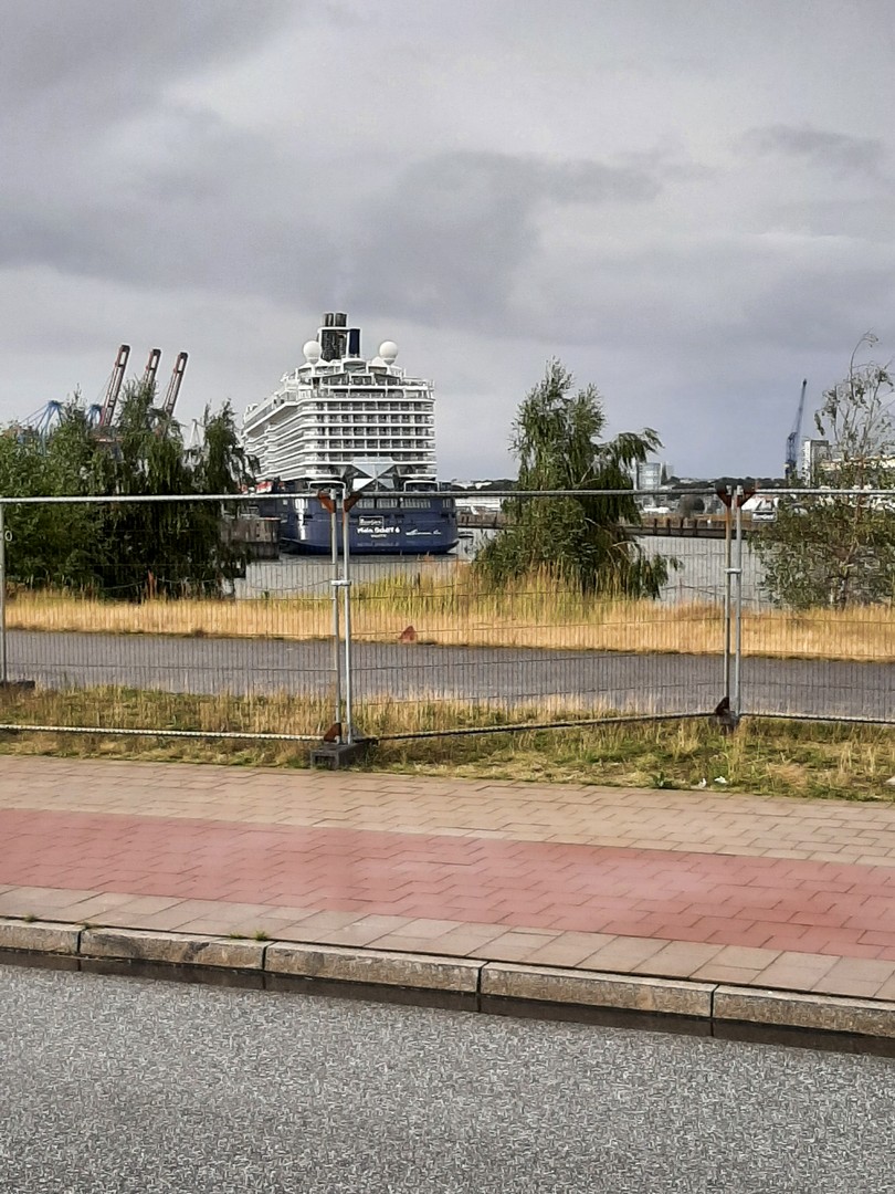 Bis kurz vor Hamburg war alles gut. Dann musste ich aber auf die B75 fahren um zum Cruise Center in Steinwerder zu kommen. Ich musste dortlang, da die Köhlbrandbrücke gesperrt war. Und die Abfahrt zum Anleger war wegen einer etwas komplizierten Baustellenführung auch nicht so einfach zu finden. Mit etwa 40 minütiger Verspätung sind wir dann am Kreuzfahrthafen angekommen und die Reisegruppe war glücklich.