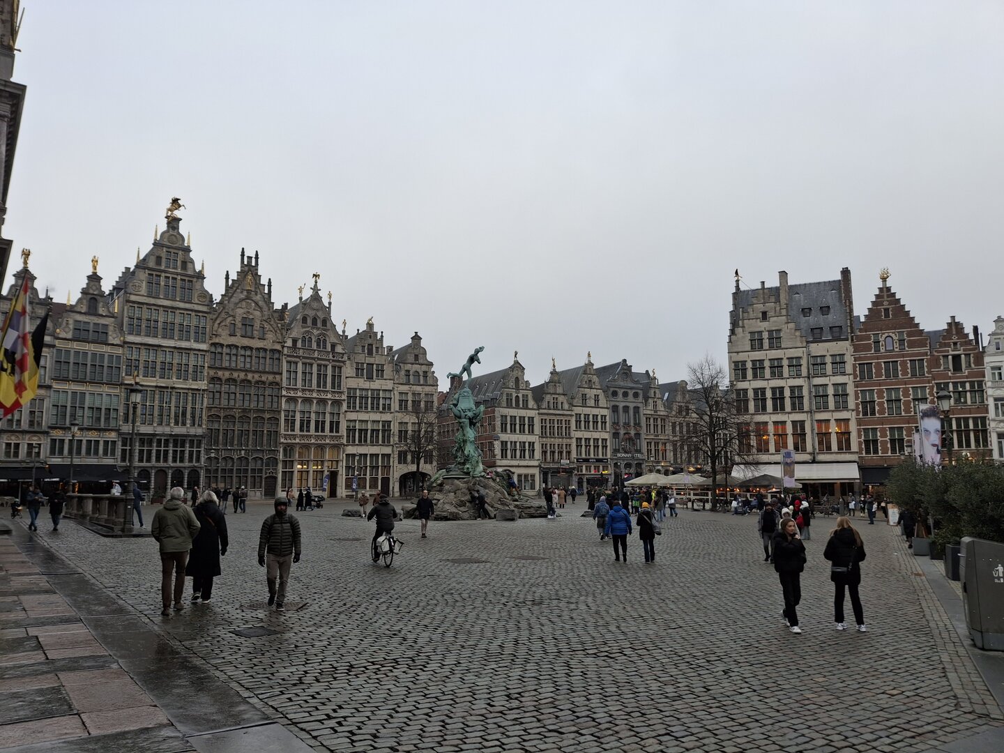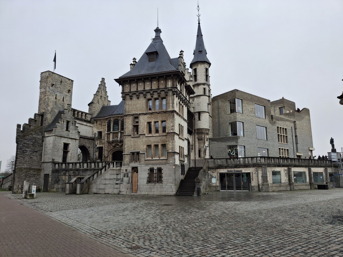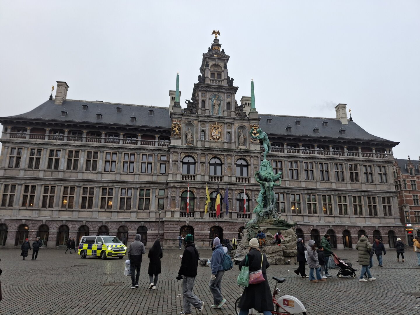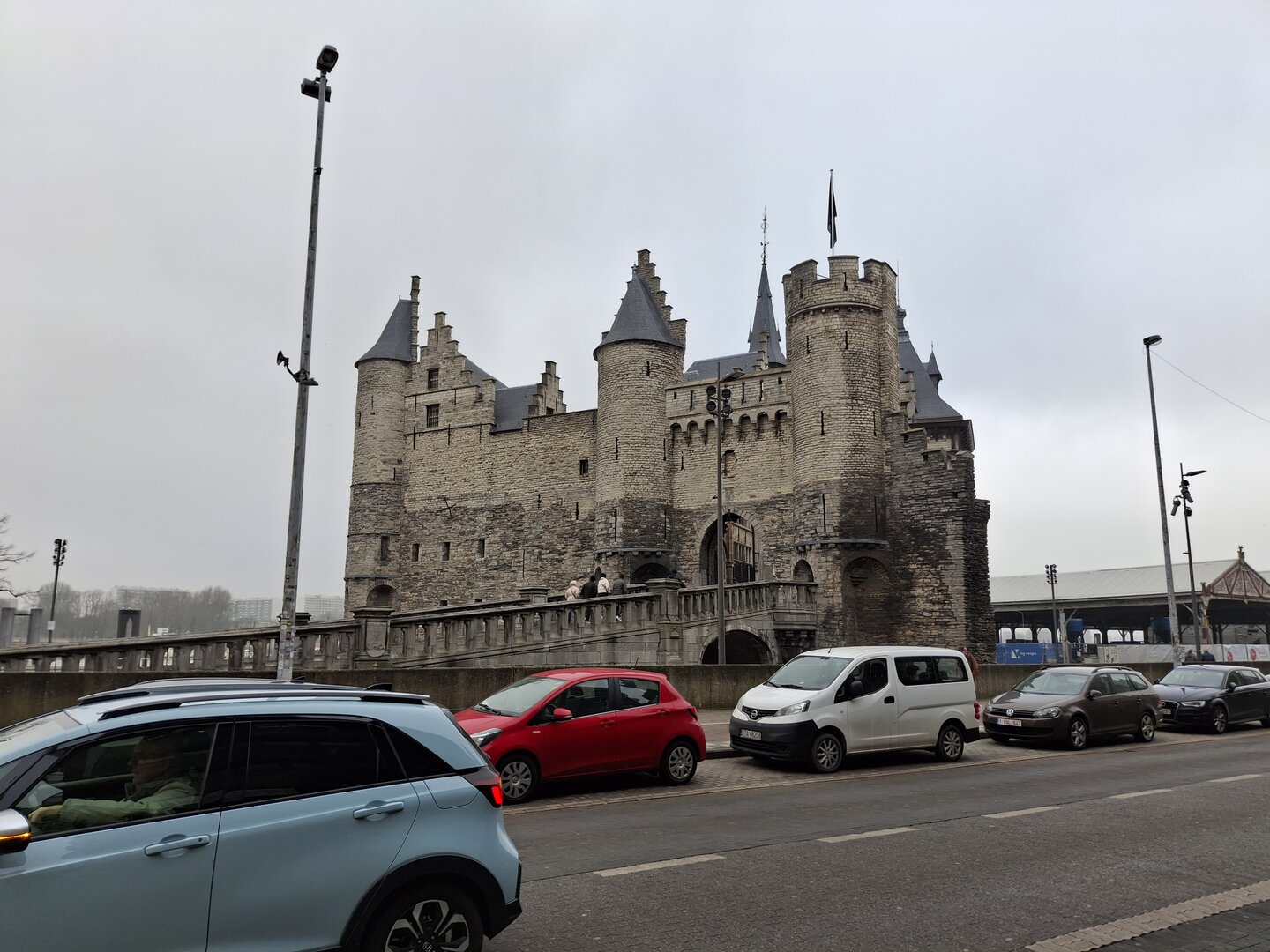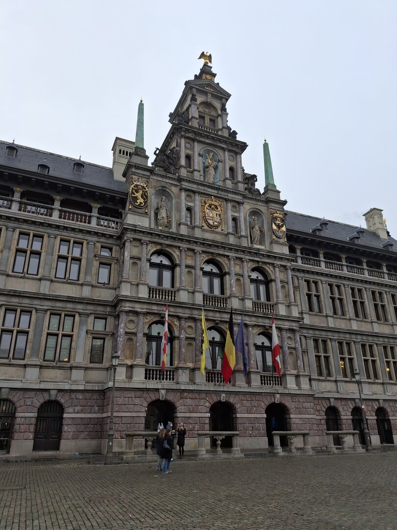 Nach sechs Stunden Fahrt erreichten wir schließlich das Ziel – den Parkplatz des US Army Monuments in Antwerpen. Die Stadt, direkt am Fluss Schelde gelegen, präsentierte sich uns in einem mystischen, teils gefrorenen Nebel, der der Szenerie einen besonderen Charme verlieh.Nach einer ordentlichen Runde Schlaf, in der ich mich von der langen Fahrt erholte, machte ich mich auf den Weg, um die Altstadt zu erkunden. Der erste Stopp war der Jordaenskaai, der malerische Uferbereich, von dem aus wir in die historische Innenstadt gelangten. Ein besonders markantes Bauwerk war die Burg Steen, die eindrucksvoll an der Schelde liegt. Diese mittelalterliche Festung, die im 12. Jahrhundert erbaut wurde, war einst Teil der Verteidigungsanlagen der Stadt. Heute beherbergt sie ein Museum, in dem man viel über die Geschichte der Stadt und des Flusses erfahren kann.