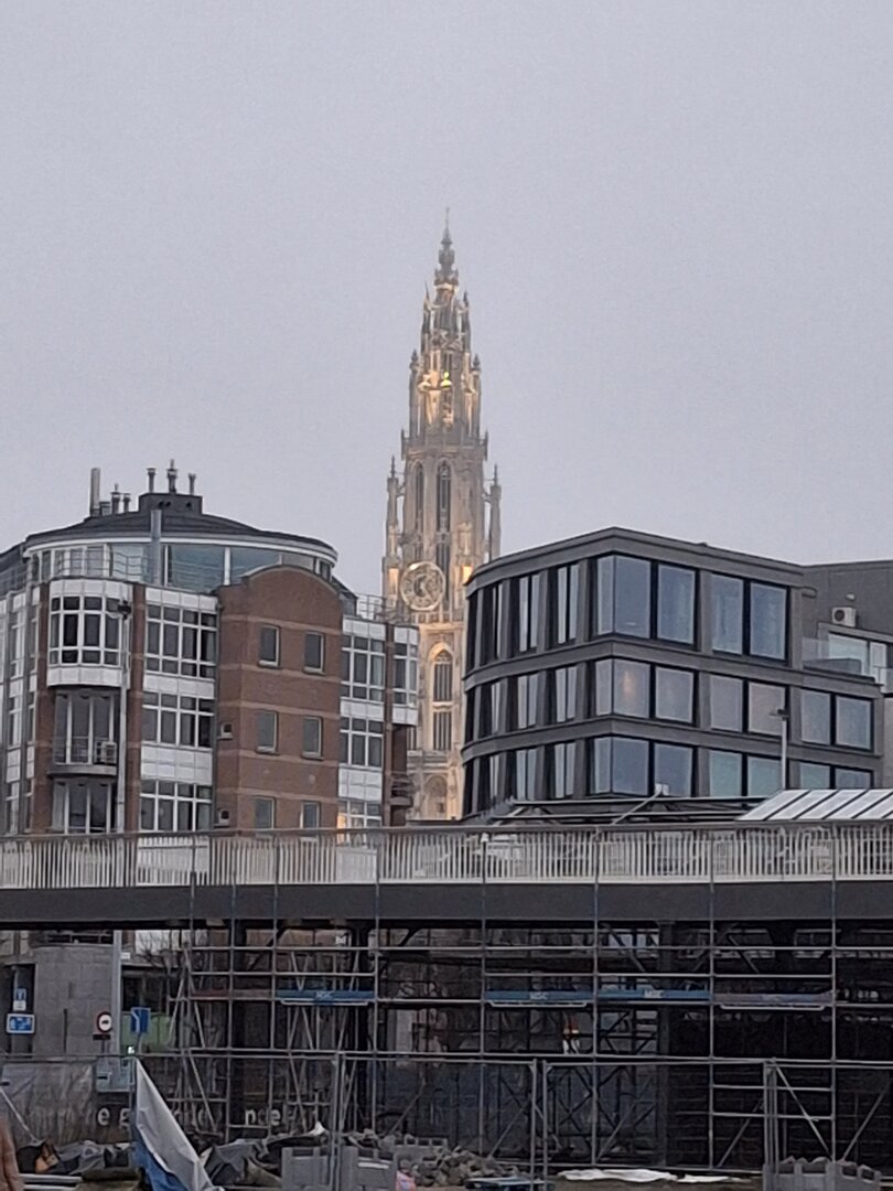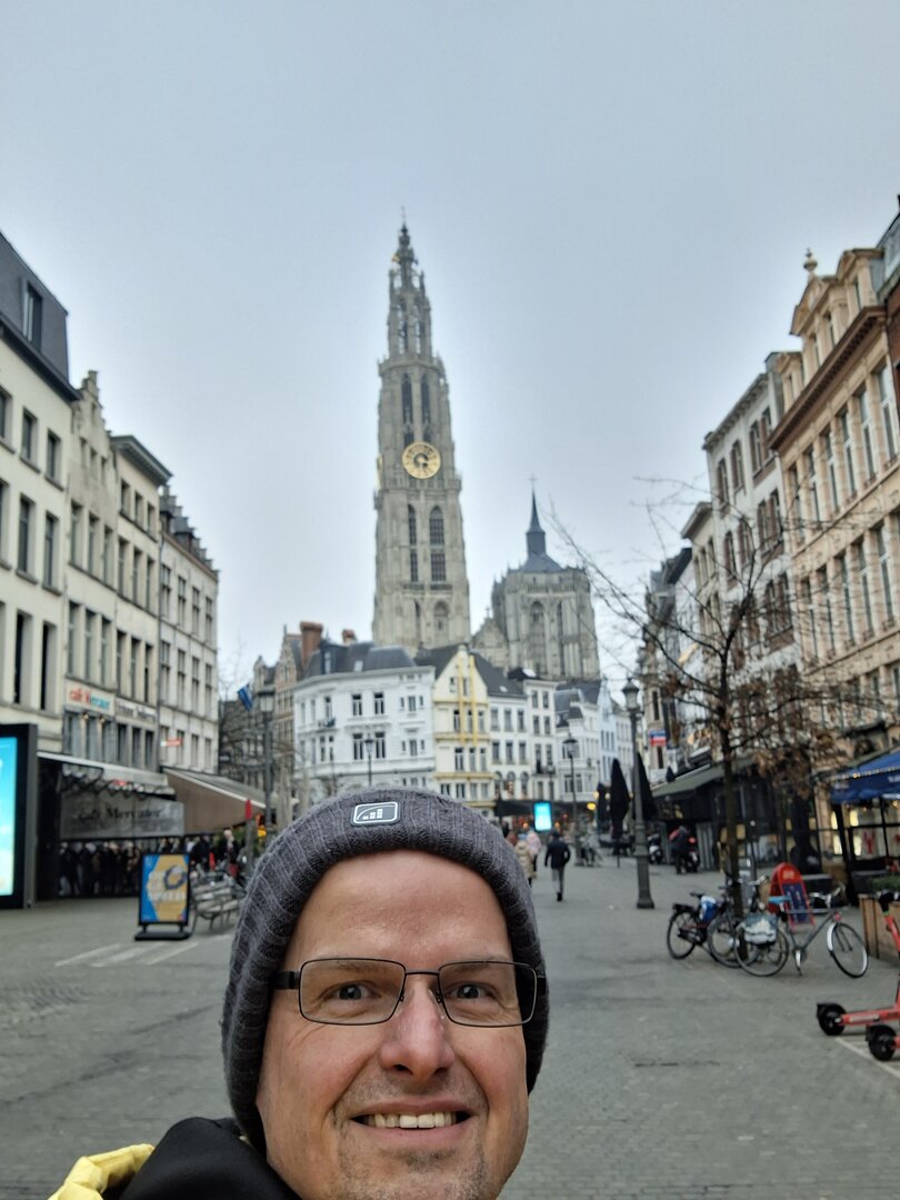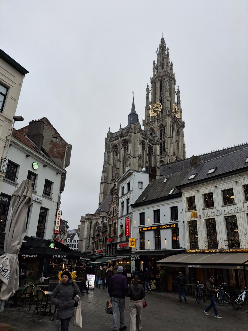 Ein Stück weiter erreichte ich die berühmte Liebfrauenkathedrale. Diese gotische Kathedrale, ein UNESCO-Weltkulturerbe, zählt zu den beeindruckendsten Kirchen in Belgien. Hier gönnte ich mir eine Pause und entschied mich für eine typisch belgische Portion Pommes mit einer von vielen verfügbaren Soßen – ein kulinarisches Highlight, das den Besuch abrundete.Die Zeit verging schnell und gegen Abend war es bereits Zeit, den Rückweg anzutreten. Nach nur fünf Stunden Aufenthalt in der Stadt mussten wir uns leider wieder auf den Weg machen. Die Heimfahrt führte uns durch den dichten Nebel zurück, und um 20:45 Uhr erreichte der Bus die Raststätte nahe Münster. Hier wurde ich nach einer 15-stündigen Schicht abgelöst, und der ereignisreiche Tag fand ein Ende.