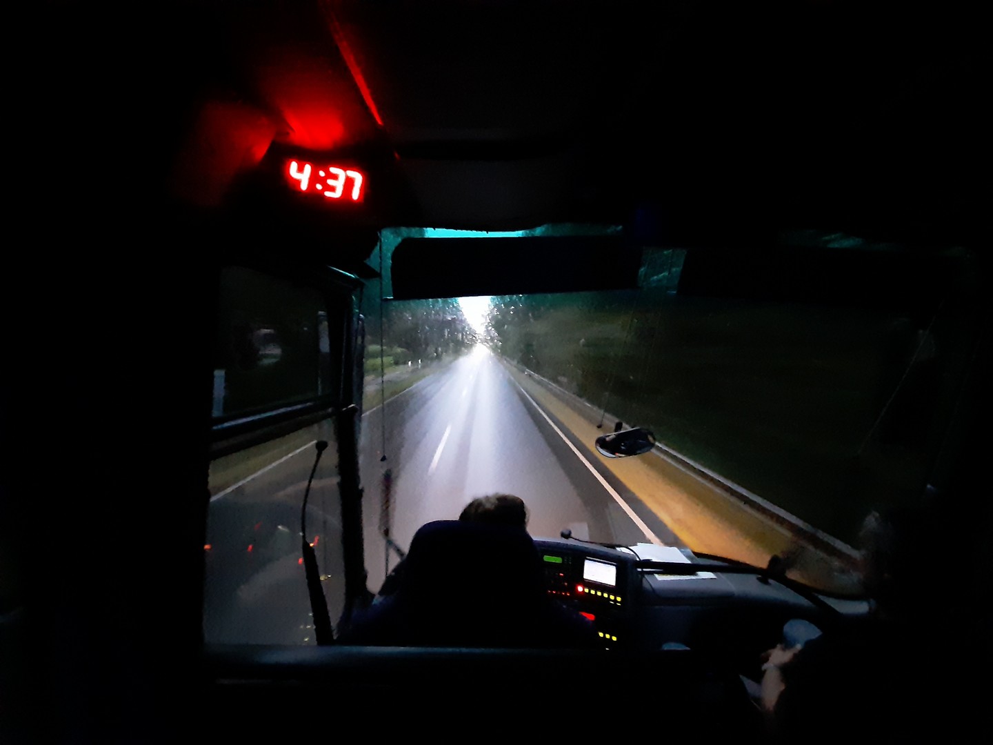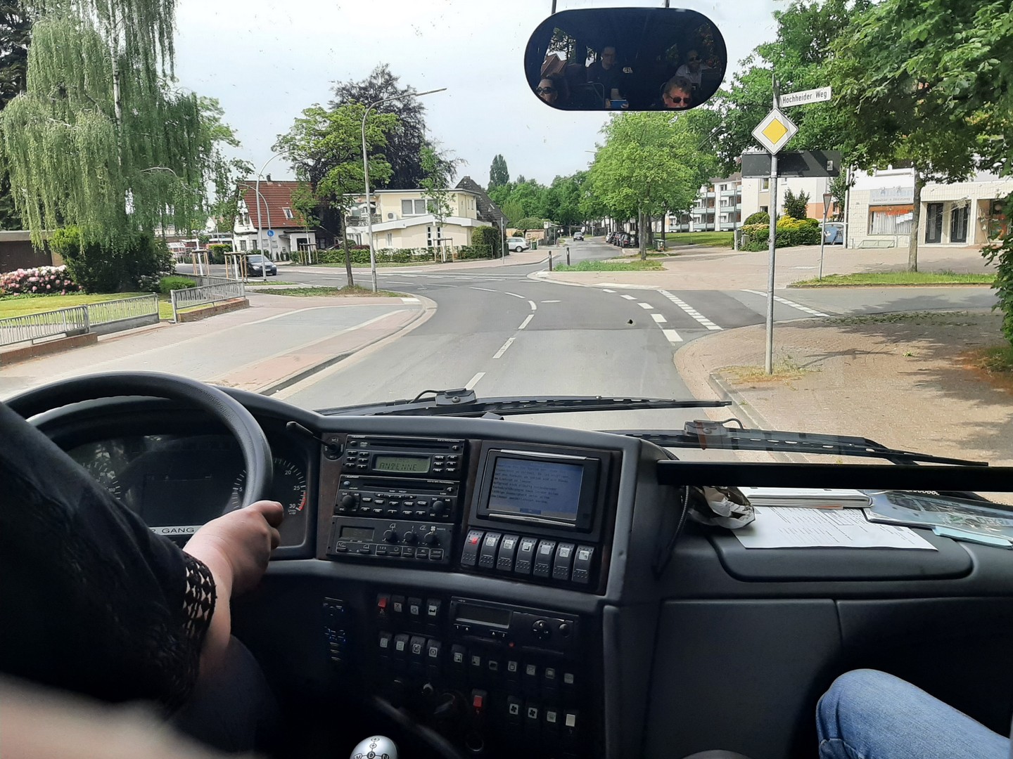 Bereits parallel zum theoretischen Unterricht begannn auch die praktische Ausbildung. Und so war ich, mit vier weiteren Busfahrer-Anwärter, sehr aufgeregt auf unsere erste (von insgesamt 58) Fahrstunden. Es war ein unfassbares mega tolles Gefühl, am 16. Mai das erste Mal einen so großen 14 Meter langen Fahrschulbus zu fahren!