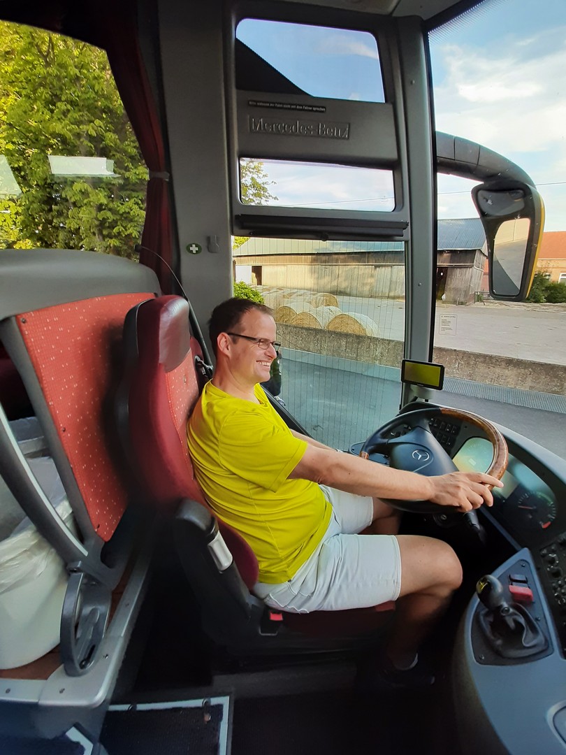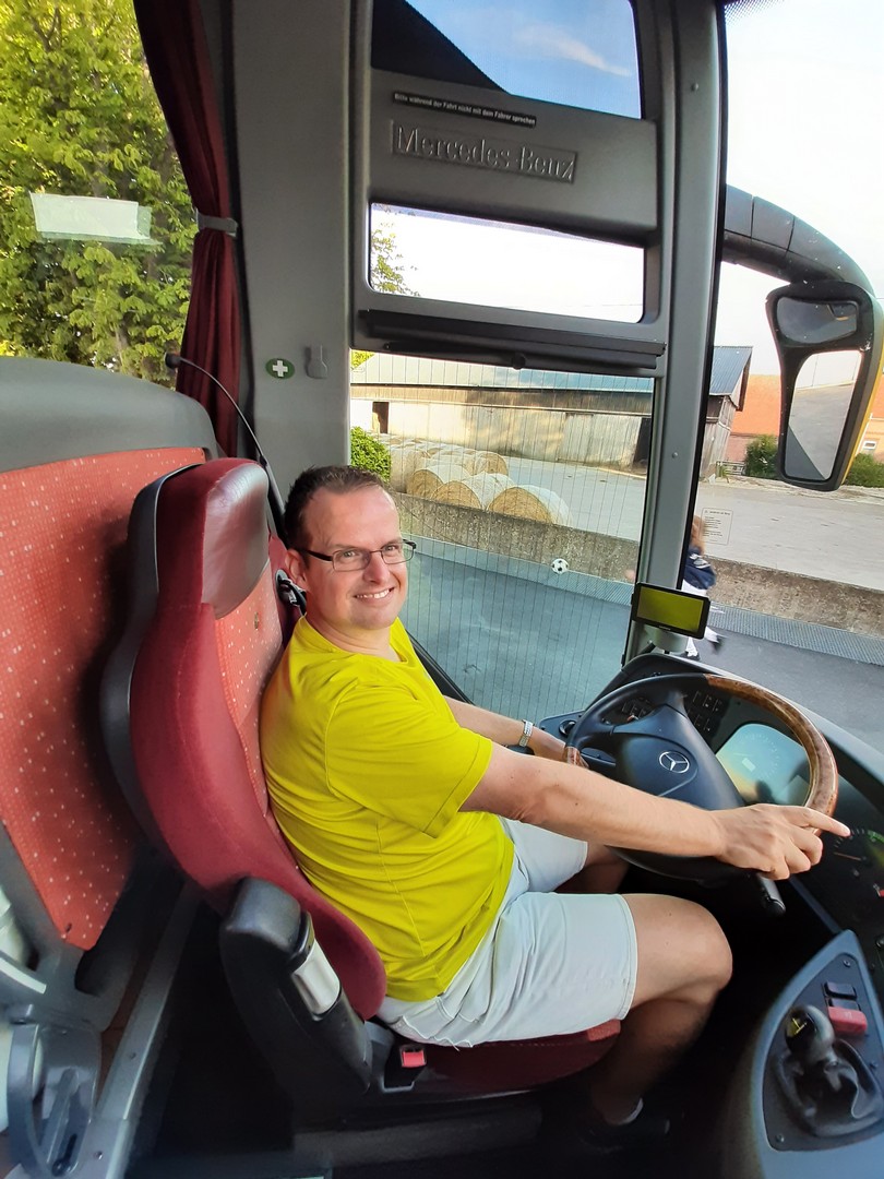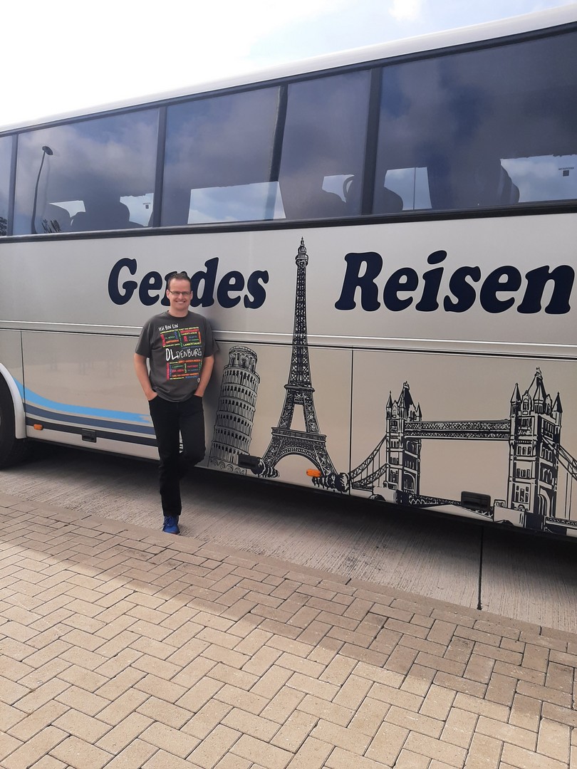 Auf Einladung einer Bekannten durfte ich Anfang August, beim Sommerfest, die Firma Wiards-Reisen kennenlernen. Meine Bewerbungsunterlagen hatte ich natürlich dabei, denn ich wollte schon gern Fahrer der tollen und modernen Busflotte werden. Ein paar Tage später machten mein zukünftiger Chef Jörn und ich, Nägel mit Köpfe! Seit dem 1. September bin ich nun Busfahrer und es macht mich jeden Tag Stolz als Fahrer unterwegs zu sein.