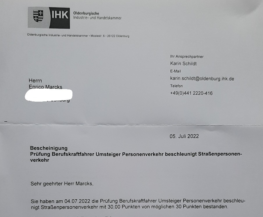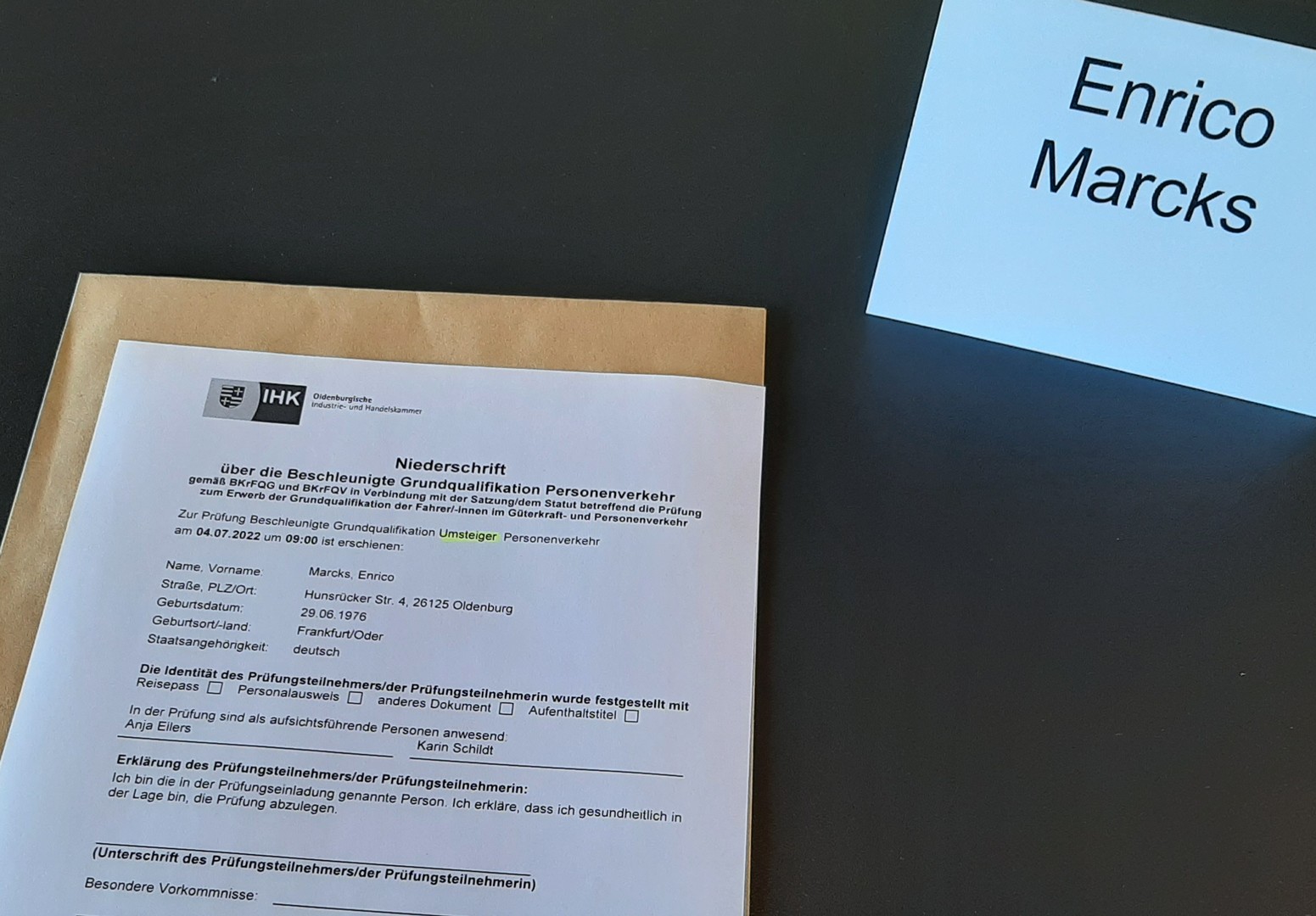 Im Jahr 2022 durfte ich mir einen riesen Kindheitstraum erfüllen. Ich bekam die Chance ab 7. März bei der DEKRA in Oldenburg meine Ausbildung zum Busfahrer zu machen. Neben der Fahrschule musste ich auch eine Beschleunigte Grundqualifikation absolvieren und habe am 31. Mai meine Prüfung mit 100% bei der IHK bestanden.